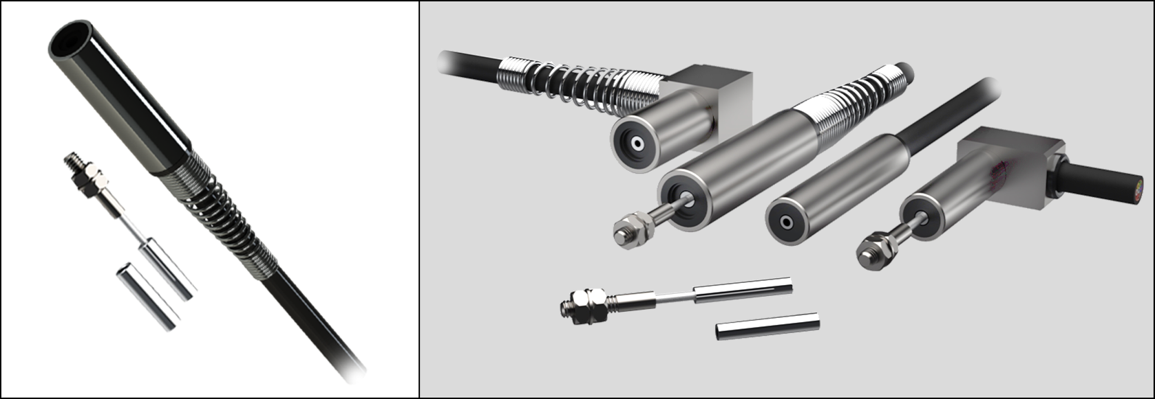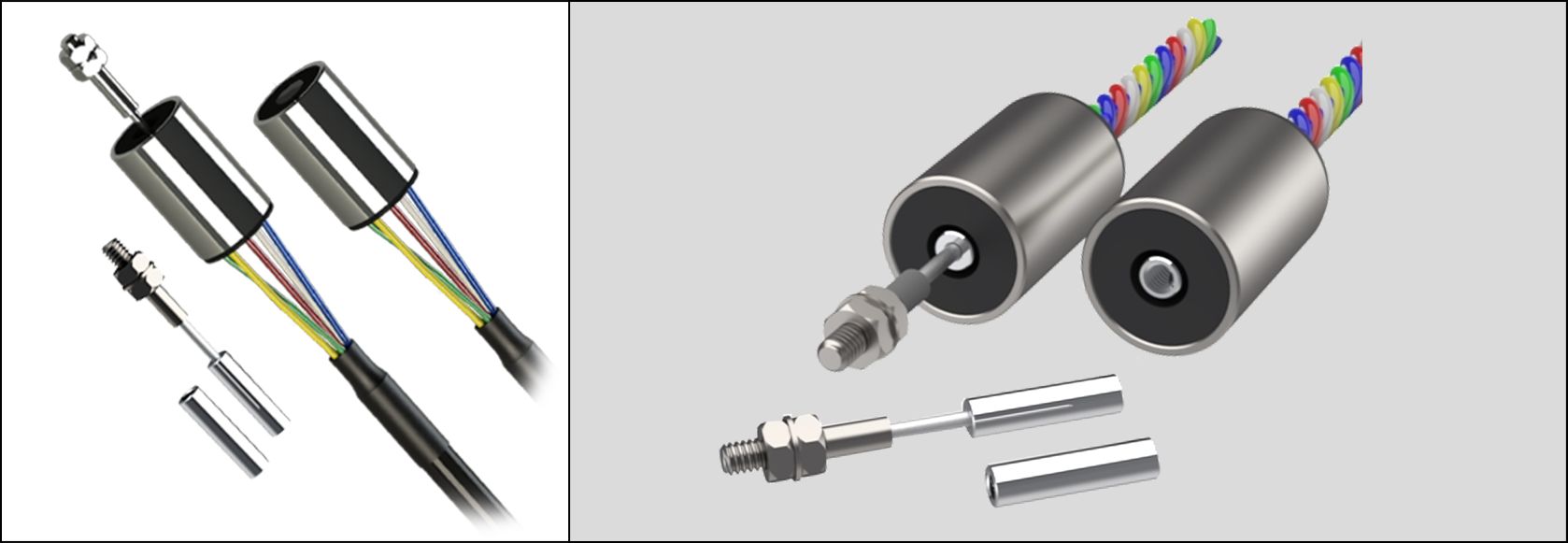 The small case diameter (6mm and 8mm) allows for easy installation in confined spaces. A right angle output facility is available as a retrofit for the 8mm version.The low core weight makes this range ideal for use in low inertia systems. Cross talk is prevented by the screened cable, which also allows for multiple use of these sensors in close proximity.